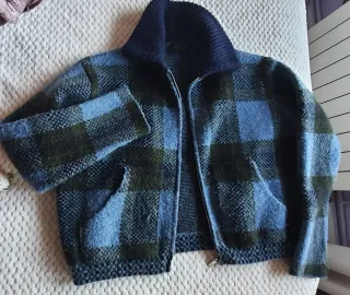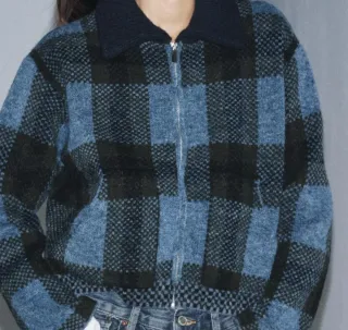 Chaqueta tipo bomber de punto con un diseño de cuadros llamativo. - Cierre de cremallera frontal. - Cuello de canalé. - Manga larga.