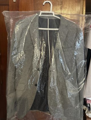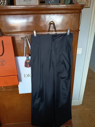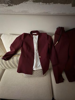 Elegante conjunto de traje de chaqueta y pantalón. - Chaqueta con cuello mao y detalle de botones dorados. - Pantalón de vestir de corte recto. Usado solo dos veces, está impecable. Lo vendo porque fue una compra por error de talla, me queda grande. Ideal para trabajo, eventos, cenas o looks más formales. Se vende el conjunto completo.