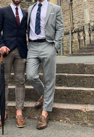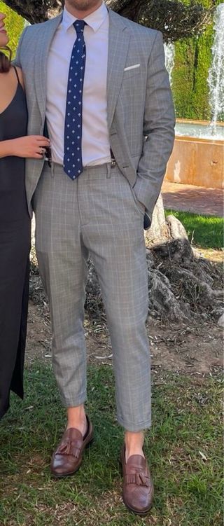 Traje de dos piezas de Zara con un diseño de cuadros. como nuevo - Chaqueta- 50 - Pantalones- 42 - Chaqueta y pantalón a juego. - Color gris con patrón de cuadros.
