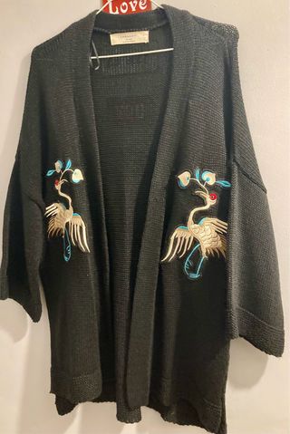 Chaqueta de punto de Zara con un diseño elegante. - Tejido de punto fino. - Bordado de grullas y flores en la parte delantera. - Manga 3/4.