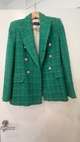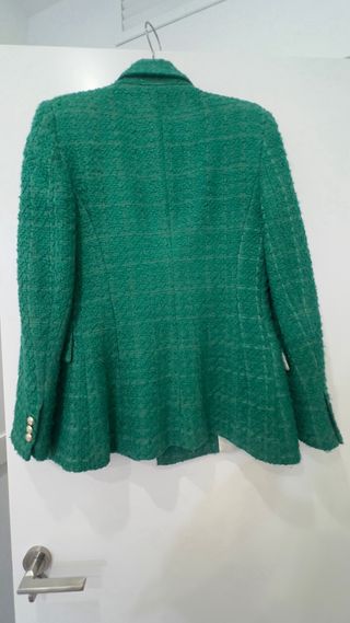 Chaqueta Zara Terciopelo Verde Botones Perla