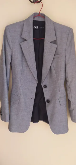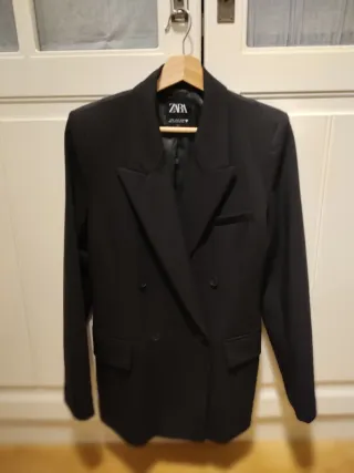Elegante traje de chaqueta de la marca Zara. - Chaqueta de corte clásico. - Color negro. - Diseño moderno y versátil.
