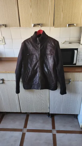Chaqueta de piel para hombre de la marca Zara. Se encuentra en perfecto estado. - Diseño clásico. - Cierre de botones. - Cuello camisero.