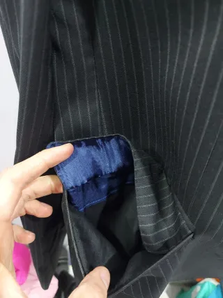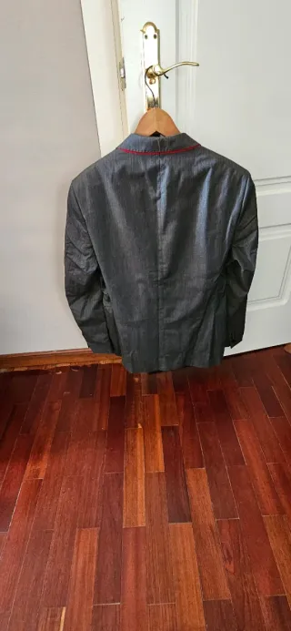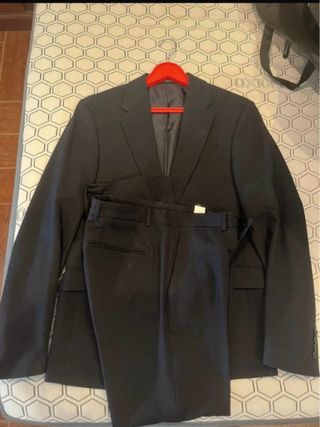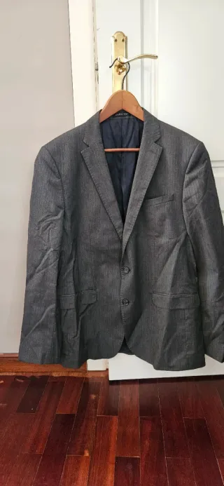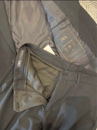 Elegante traje de chaqueta de Zara Man con un clásico diseño de raya diplomática. Perfecto para ocasiones formales o para darle un toque sofisticado a tu vestuario. - Chaqueta de corte moderno. - Pantalón a juego con raya diplomática. Todos los botones y cremalleras en perfecto estado. Varios bolsillos interiores. Usado, pero en muy buen estado.