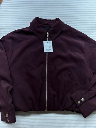 Chaqueta estilo bomber de Zara. Un básico versátil para cualquier ocasión. - Cierre de cremallera. - Puños y bajo elásticos. - Diseño ligero.