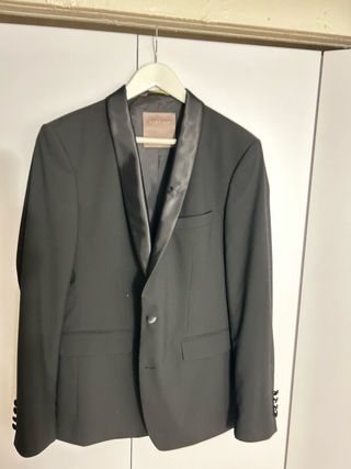Elegante chaqueta de vestir de Zara Man. - Solapa de satén. - Cierre de un botón. - Bolsillos frontales con solapa. - Puños con botones.