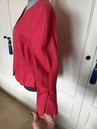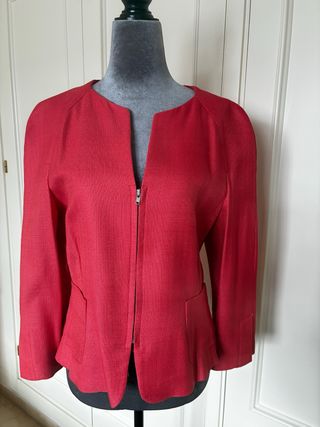 Elegante chaqueta de Zara Basic en color rojo, ideal para añadir un toque de estilo a cualquier atuendo. - Diseño clásico con solapas. - Cierre de dos botones. - Costuras decorativas en contraste.
