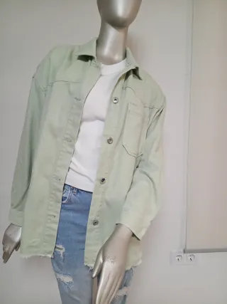 Chaqueta vaquera de Zara en color verde. Un básico para tu armario. - Diseño de corte recto. - Cierre de botones. - Bolsillos en el pecho. - Bajo deshilachado.