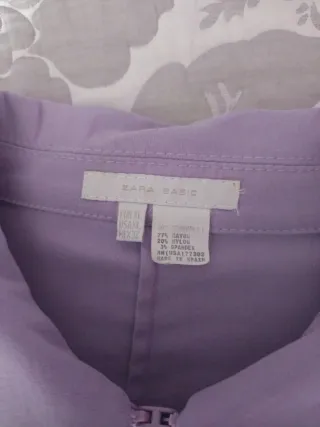 Chaqueta de Zara en color morado, con un diseño moderno y versátil. - Cierre de cremallera frontal. - Cuello camisero. - Puños abotonados. Sirve para una L