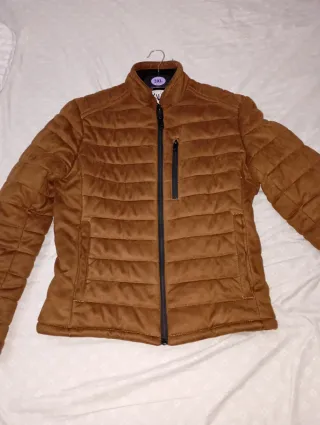 Chaqueta acolchada con capucha y forro interior. - Cierre de cremallera frontal. - Bolsillos laterales con cremallera. - Puños elásticos. Está sin uso. Talla:S No me desplazo, se envía. No negociable