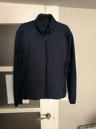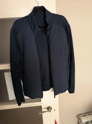 Chaqueta acolchada de la marca Zara en color azul marino. Diseño moderno y elegante. - Cierre de cremallera frontal. - Cuello alto con detalle de cremallera. - Bolsillos laterales con cremallera. - Puños y bajo elásticos.