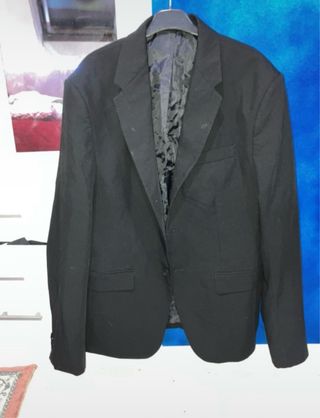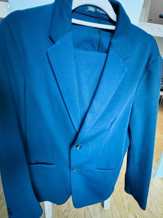 Traje de dos piezas de la marca Zara. -Puesto solo para un evento. - Chaqueta con solapa y cierre de botones. - Pantalón a juego con trabillas para cinturón. -Negociable