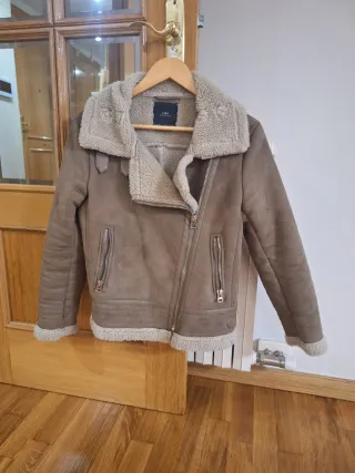 Chaqueta corta de Zara con un diseño moderno y cálido. - Efecto ante en color marrón. - Forro interior y cuello de borreguito. - Cierre de cremallera. - Detalle de cintas en cuello y puños. Nuevo sin etiqueta