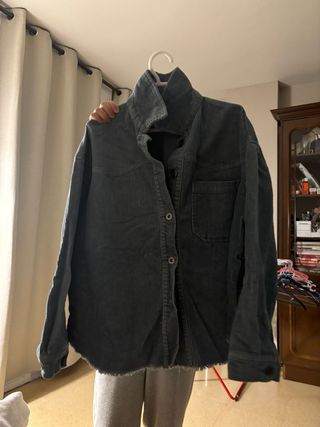 Chaqueta de pana con un diseño moderno y cómodo. - Material: Pana - Color: Gris - Cuello alto - Cierre de botones - Bajo deshilachado