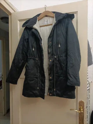 Parka de Zara con capucha y chaqueta interior acolchada. - Cierre de cremallera y botones a presión. - Chaqueta interior acolchada de manga larga con bolsillos y puños. Se puede quitar. - Cintura ajustable con cordón. - Bolsillos frontales con cremallera. - Puños elásticos. - Tanto la capucha como el pelo se pueden quitar.