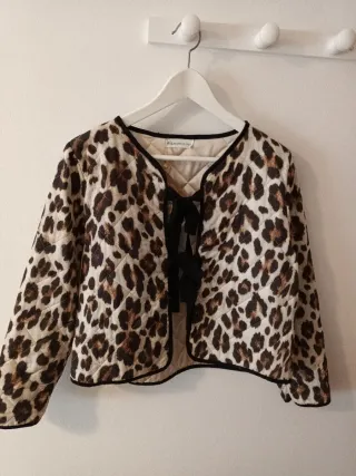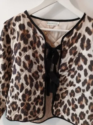 Chaqueta corta con estampado de leopardo sólo envíos - Cierre con lazada. - Ribete negro en cuello y bajo.