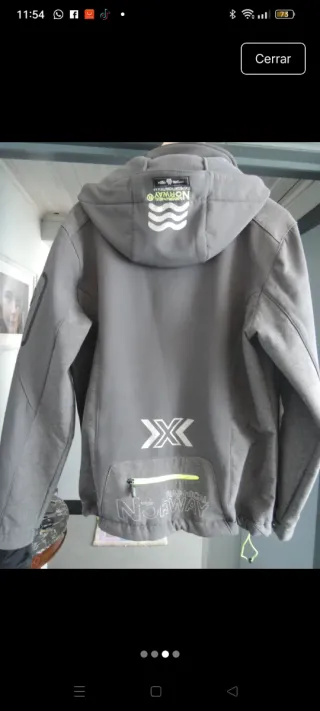 Chaqueta de la marca Norway con detalles en verde. - Cremallera frontal. - Bolsillos con cremallera. - Capucha. - Puños ajustables.