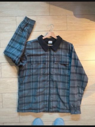 Chaqueta de Pull & Bear con un diseño original. - Parte superior en ante sintético. - Detalle de flecos en la zona del pecho y mangas. - Cuerpo inferior con estampado de cuadros. - Cierre de botones, le falta el último. - Holgada. - Talla M, ver medidas en las fotos.