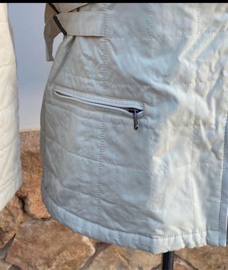 Chaqueta forrada, con lazo interior adaptable en la cintura. Largo 58cm. Axila 44cm.