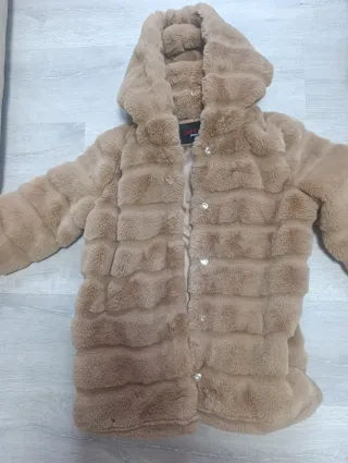 Chaqueta de pelo sintético muy calentita, ideal para los días fríos. Su diseño con capucha la hace aún más acogedora. - Cierre de botones. - Tacto muy suave. - Diseño a rayas horizontales.