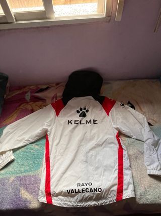 Chaqueta deportiva del Rayo Vallecano. - Diseño con detalles en rojo y blanco. - Capucha integrada. - Cierre de cremallera frontal.
