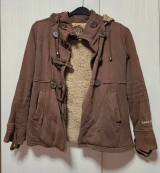 Chaqueta con forro interior de peluche. - Cierre de botones y cordones. - Capucha. - Bolsillos delanteros.