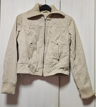 Chaqueta de pana en color beige, con un diseño moderno y versátil. - Cierre de cremallera frontal. - Cuello alto. - Bolsillos delanteros con solapa. - Puños y bajo elásticos.