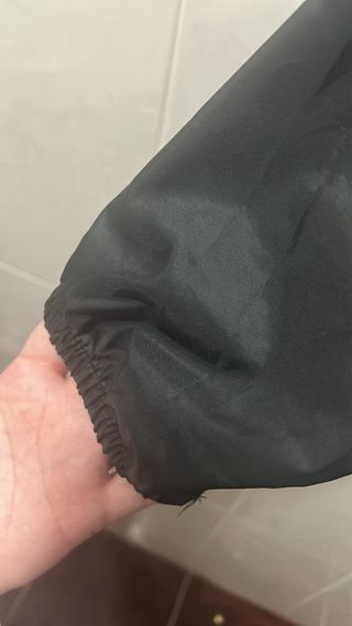 Ligera y cómoda. Cuenta con cremallera frontal,capucha y bolsillos y cintas ajustables en el bolsillo. En buen estado. Etiqueta talla S,pero talla un poco más grande,equivalente a M.