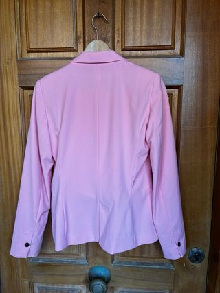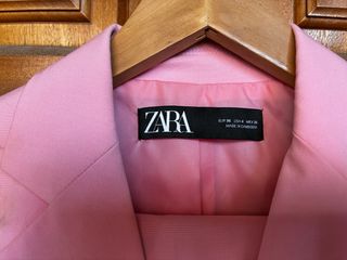 Conjunto de chaqueta y pantalón en color rosa de Zara. Un clásico renovado para cualquier ocasión. - Chaqueta con solapa. - Cierre de botón. - Pantalón de corte recto.
