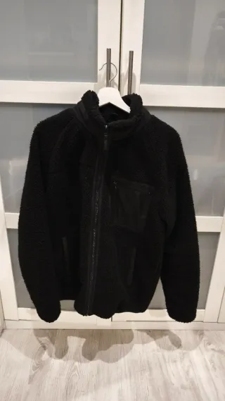 Chaqueta borrego negra cremallera con bolsillos