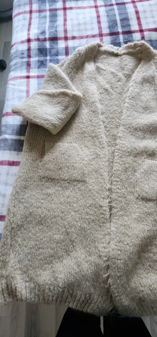 Chaqueta larga de punto para mujer, ideal para un look casual. - Diseño abierto. - Dos bolsillos delanteros. - Manga larga. Calentita