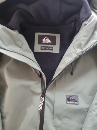 Chaqueta de la marca Quiksilver en color verde. Fabricada en Indonesia. IMPORTANTE (LEER ANTES DE COMPRAR): La cremallera principal tiene un fallo en el tope inferior (se ha desprendido el refuerzo, ver última foto). Actualmente no cierra bien y necesita ser sustituida o reparada por alguien que sepa de costura. - Talla XS / TP / ECH. - Interior forrado.
