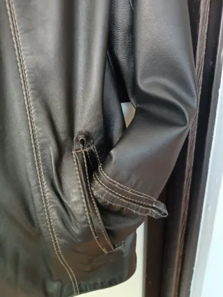 Bonita chaqueta negra de piel, muy suave, con bonitos detalles de pespuntes