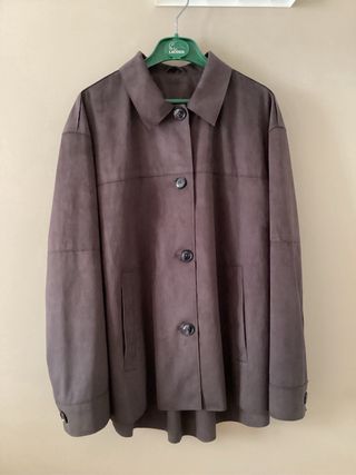 Chaqueta de ante en color marrón chocolate, marca Slowlove, talla única. Nueva, sin etiquetas - Cierre de botones. - Cuello camisero. - Bolsillos laterales.