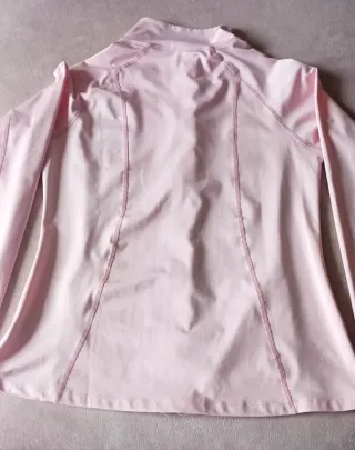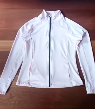 Chaqueta deportiva para mujer con un diseño moderno y cómodo. - Cremallera frontal completa. - Cuello alto. - Bolsillos laterales. - Mangas largas. - Muy entallada. - Orificio para los pulgares.