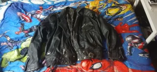 Chaqueta de cuero estilo motero. - Cierre de cremallera frontal. - Bolsillos con cremallera. - Cinturón ajustable en la parte inferior.