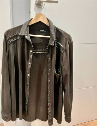 Chaqueta de Bershka en color verde caqui. Presenta un diseño con cordones decorativos en los hombros y en la parte delantera. - Cierre de botones a presión. - Bolsillo en el pecho. - Cuello camisero.