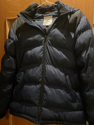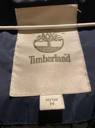 Chaqueta acolchada de la marca Timberland. - Diseño bicolor en azul y negro. - Capucha integrada. - Cierre de cremallera frontal. - Bolsillos laterales. Talla 16 años