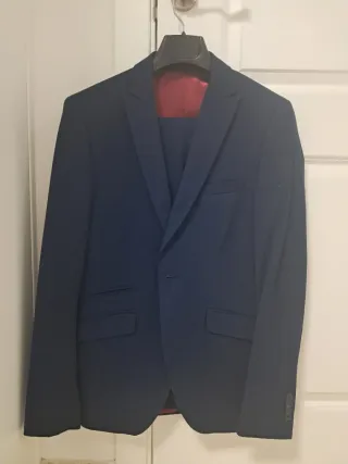Traje de chaqueta completo en color azul marino. - Chaqueta con forro interior en color burdeos. - Cierre de un botón en la chaqueta. - Puño de la manga con tres botones.
