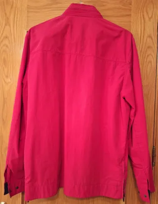 Chaqueta de hombre estilo cazadora larga de color rojo. Con cremallera y bolsillos laterales, tambien lleva capucha invisible. Ideal para un estilo casual y para este tiempo. Talla: L. Marca Nuñez de Arenas.