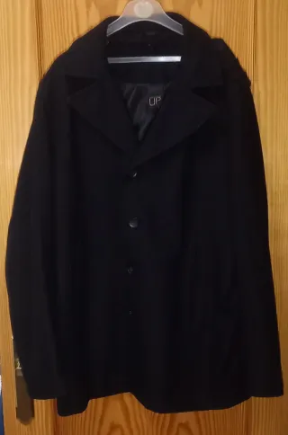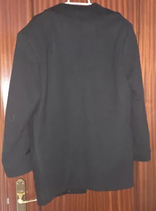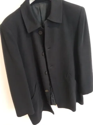 Elegante chaquetón de paño en color negro. - Diseño clásico. - Cierre de botones. - Cuello solapa. Chaquetón mujer en negro. Largura 3/4 Medida de hombro 40cm Medida de pecho (por debajo de la axila) 43cm