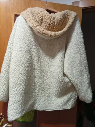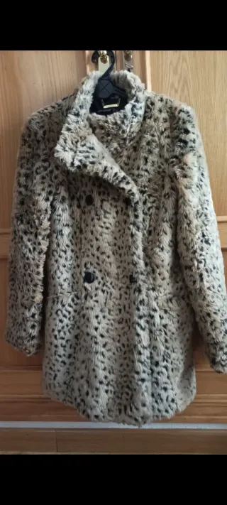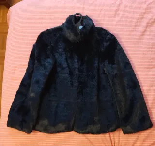 Elegante chaquetón de pelo sintético. - Tacto suave y cálido. - Diseño con cuello envolvente. - Cierre frontal. En la etiqueta marca talla L, pero parece más una Xl