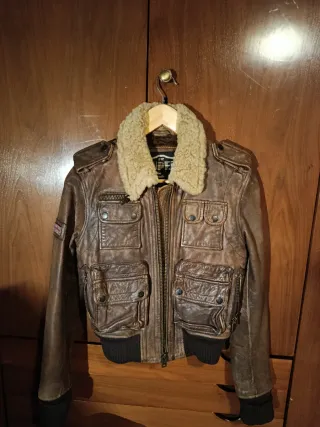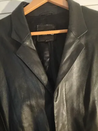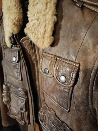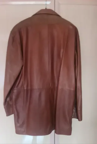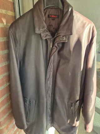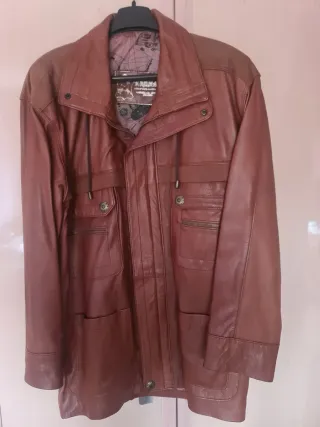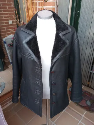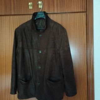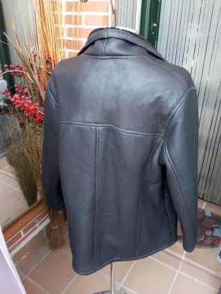 Elegante chaquetón de piel para caballero. Un clásico atemporal. - Diseño con múltiples bolsillos. - Cierre frontal con cremallera y corchetes ( 1 arriba y otro abajo). - Interior acolchado. - Cuello con diferentes posiciones. - Talla 50 aproximadamente. Puedo enviar medidas. En muy buen estado, prácticamente nuevo. Venta en persona o con envío.
