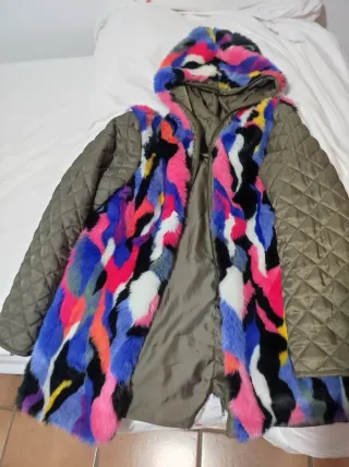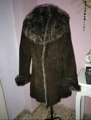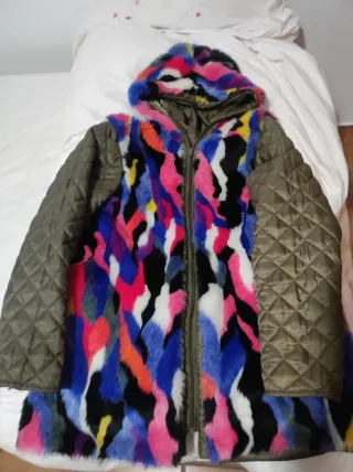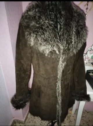 Chaquetón de lana y piel puesto una vez y limpio de tintorería.