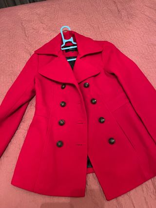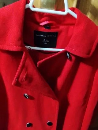Elegante chaquetón corto en color rojo de Dorothy Perkins. Un básico para añadir un toque de color a tus looks. Pone talla 34 pero da bastante talla como una 38. De axila a axila mide 48 cm, de hombro a hombro 38 y de largo 74 - Diseño de doble botonadura. - Cuello solapa clásico. - Bolsillos frontales. - Puños con detalle de botón. Descuento del 10% en dos o más artículos de mis anuncios y 25% a partir de 5