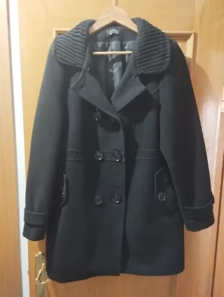 Elegante chaquetón de mujer con un diseño texturizado y cuello de pelo sintético. - Cierre frontal. - Bolsillos laterales con cremallera. - Manga larga. Cierra la parte delantera con cremalleras y botones. El cuello de astracán lo puedes poner o quitar a tu gusto porque está unido con botones. Tiene forro relleno. Está en perfectas condiciones sin ningún defecto porque apenas se ha usado Muy caliente, ponible, cómodo y combina con todo