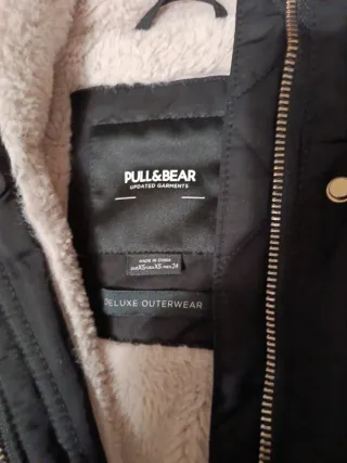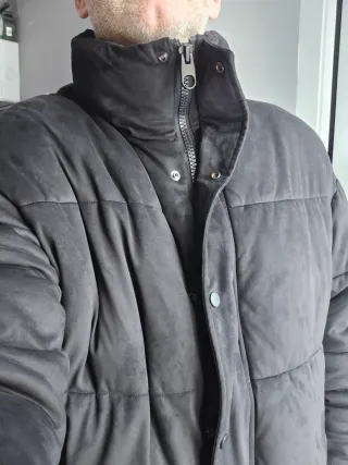 Tirne 4 usos, me viene muy grande y por eso lo vendo,me costó 50€. Es muy buena, abriga y pesa lo suyo. Cazadora o chaquetón con efecto ante y de color negro. Diseño acolchado con cuello alto y cierre de cremallera. - Material exterior con acabado suave. - Cierre de cremallera frontal. - Botones a presión en el cuello y resto de chaqueta.