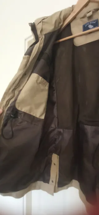 Chaquetón water-proof con capucha de pelo sintético. - Cierre de cremallera. - Cierre de solapa abotonada. - Bolsillos frontales con solapa. - Puños ajustables. - Bolsillo interior. - Impecable estado.