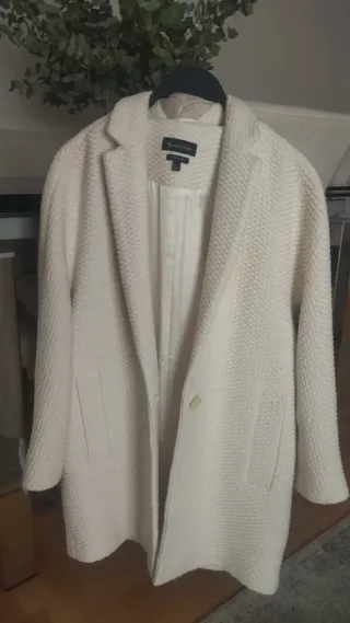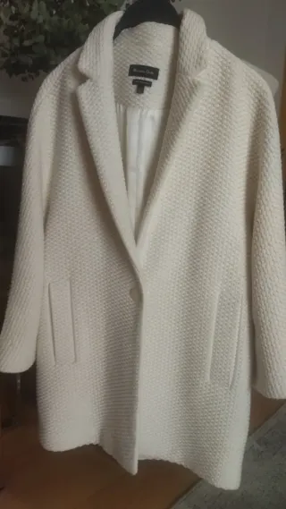 Elegante chaquetón de Massimo Dutti en color entre blanco roto y beige muy clarito. Un básico atemporal para cualquier armario. Perfecto estado por dentro y por fuera. Nuevo. Muy combinable y perfecto para cualquier ocasión. Es una T/S pero vale también para una T/M. Precio no negociable