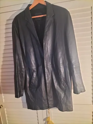 Elegante chaquetón largo de piel con un bonito acabado. Ideal para protegerte del frío con estilo. - Piel de alta calidad. - Diseño largo y envolvente. - Cierre frontal.